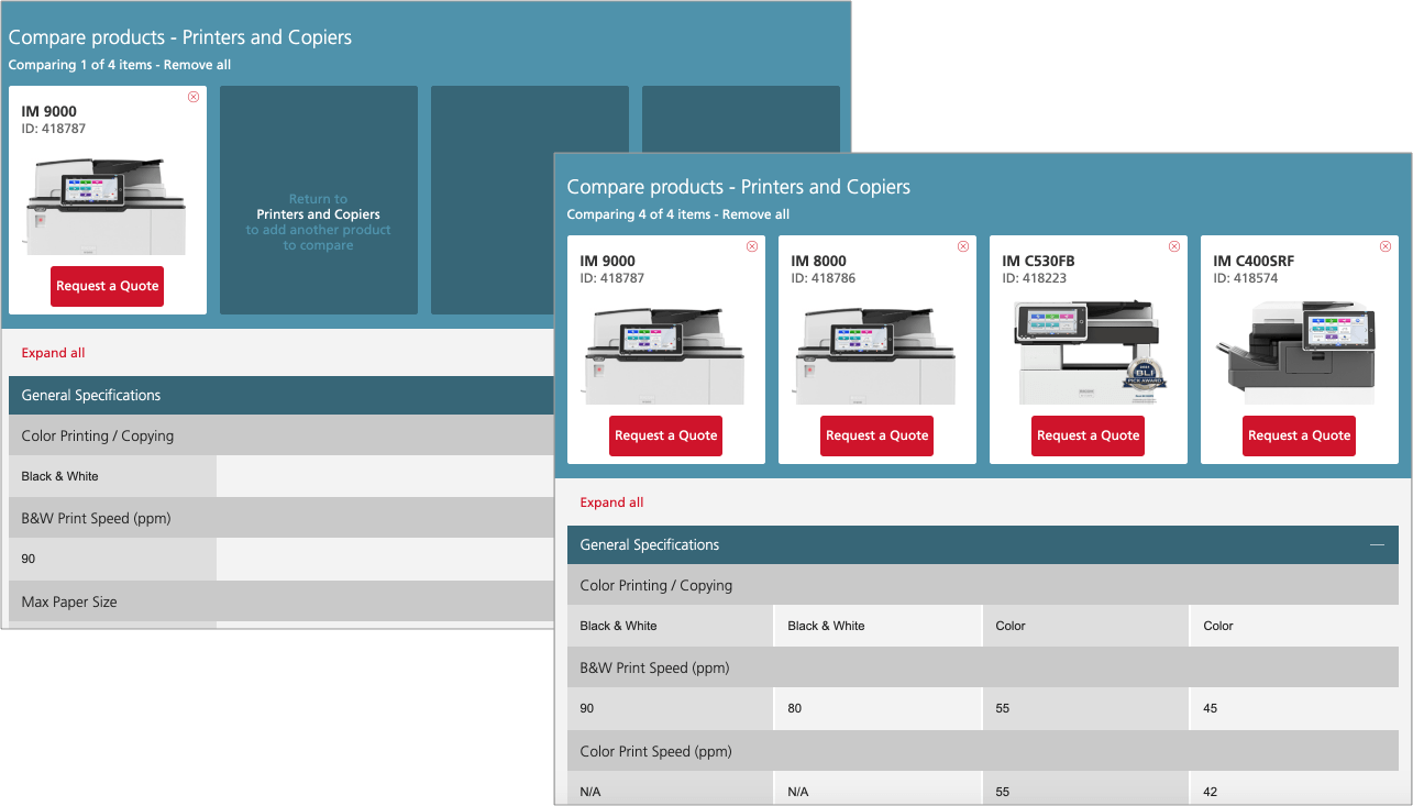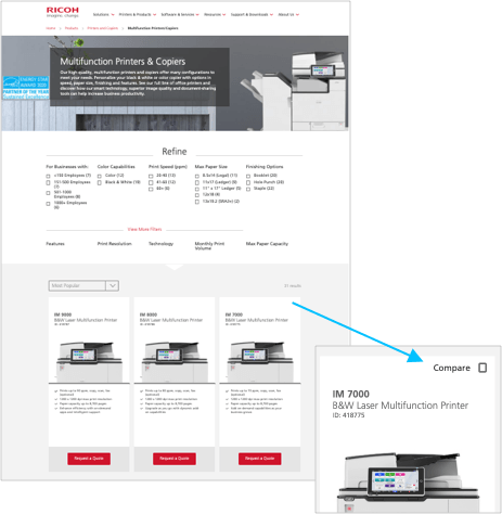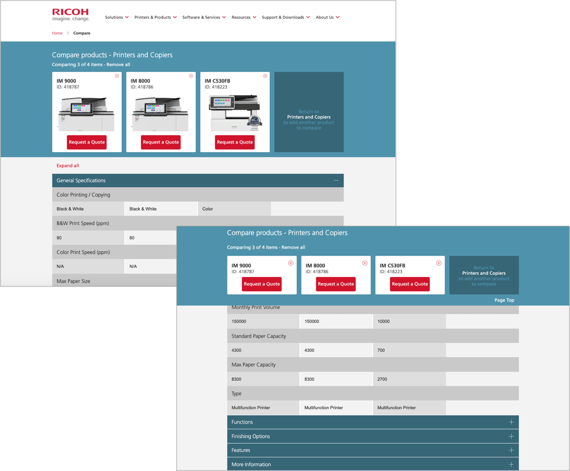 The Sales department asked us to address customer complaints about comparing product specifications. Buyers wanted an easy way to evaluate multiple products and feel confident in their decisions; sales reps also expressed interest.
